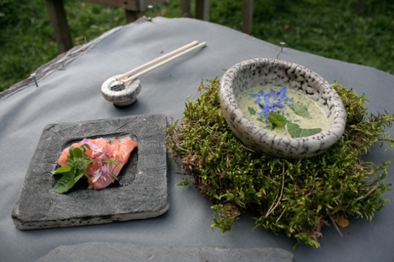 Wildes ganz edel - Lachs-Sashimi mit Sauerampfersüppchen